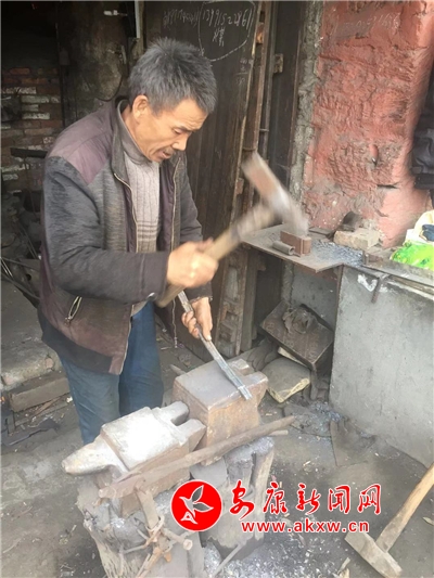 回去休息了幾天,黃師傅又操起了鐵錘。他說:“現(xiàn)在年輕人都不愿意干,張灘老一輩的鐵匠沒有一位后人從事這個行當(dāng)了。等我們這幾個老家伙干不動了,鐵匠這個手藝就失傳了……”