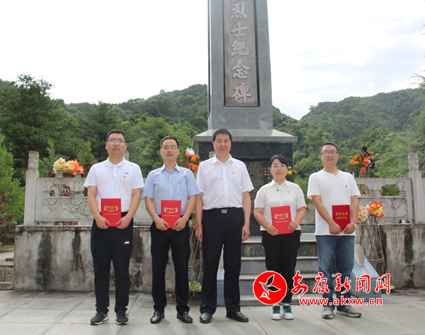 在江口鎮(zhèn)烈士陵園紀(jì)念碑下,大家認(rèn)真聆聽(tīng)了張文津、吳祖貽、毛楚雄三位烈士生前英勇事跡,瞻仰了三烈士紀(jì)念碑,烈士們堅(jiān)持革命不畏艱險(xiǎn)的英雄主義氣概,為黨和人民事業(yè)英勇獻(xiàn)身的崇高精神和堅(jiān)定信念,深深地打動(dòng)著每一位機(jī)關(guān)黨員干部。隨后,全體黨員干部莊嚴(yán)肅立,面對(duì)鮮紅黨旗,高舉右手宣誓,重溫入黨誓詞。活動(dòng)中還對(duì)優(yōu)秀共產(chǎn)黨員進(jìn)行了表彰。