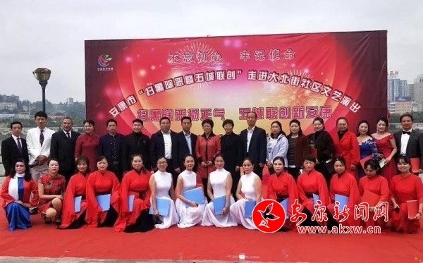 整臺(tái)演出采用舞蹈、獨(dú)唱、小品、朗誦、快板等多種形式,相聲《夸安康》、二人誦《文明之花遍地開(kāi)》、四人誦《掃黑除惡我們?cè)谛袆?dòng)》、合誦《聚力五城聯(lián) 建設(shè)美好城市》等節(jié)目將日常工作搬上舞臺(tái),寓教于樂(lè)!演出期間,社區(qū)干部對(duì)參會(huì)的居民發(fā)放掃黑除惡、新民風(fēng)等宣傳彩頁(yè)。