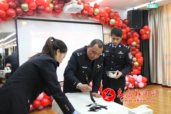 活動在雄壯有力的大合唱《人民警察之歌》中拉開序幕,詩朗誦《新年,你好!》,用詩行傳遞濃濃的節(jié)日祝福;女生小合唱《年輕的朋友來相會》,輕快的旋律,甜美的歌聲,瞬間把大家又拉回了那些青蔥歲月;崔銳利副局長一首《把根留住》獨唱,聲情并茂,把活動推向高潮;王鵬支隊長書法表演《納福迎新》,筆勢雄奇,姿態(tài)橫生,讓從警的初心從道路向筆尖延伸,即興吹奏《蘆笙戀歌》,蘆笙悠揚,宛如天籟,令人陶醉;舞蹈《舞有規(guī)行有矩》,將遵規(guī)守法融入舞蹈表演;獨唱《拉著中華媽媽的手》,婉聲悅耳,情真意切,祝愿祖國母親明天更美好;小合唱《走進新時代》,老歌新唱,踏著新時代的東風我們整裝再出發(fā);最后,活動在大合唱《我和我的祖國》中落下帷幕。