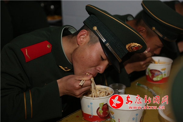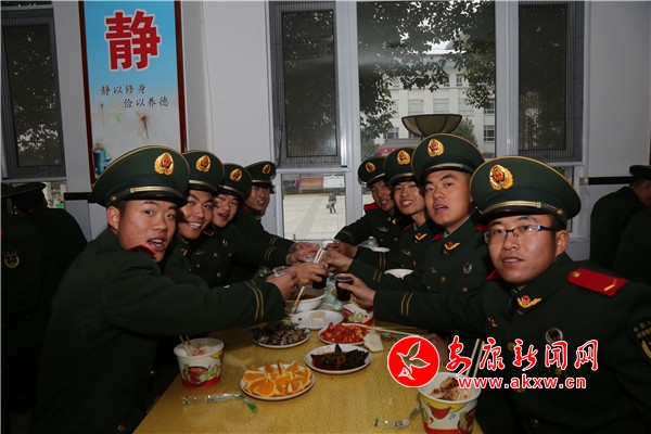 醬汁肘子,清蒸鱸魚(yú)、孜然羊肉……一個(gè)個(gè)精致美食不一會(huì)就端上了桌,剛剛卸下背囊,洗去疲憊的新戰(zhàn)友們頓時(shí)兩眼“放光”。