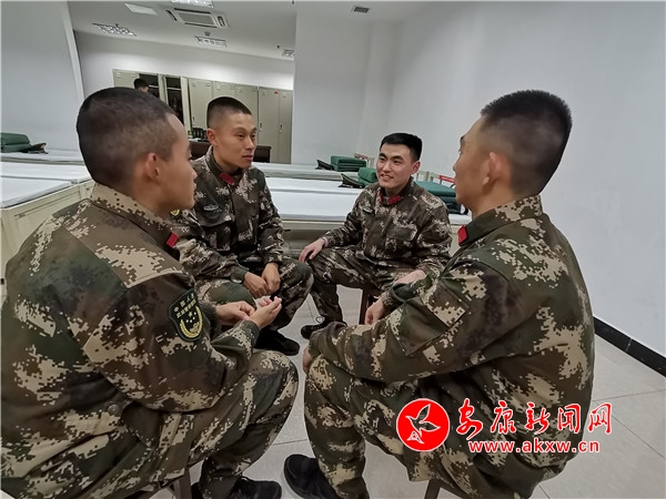 面對(duì)新環(huán)境、新任務(wù)、新挑戰(zhàn),新戰(zhàn)友們難免產(chǎn)生“水土不服”。干部骨干和新戰(zhàn)友們親切談天,讓他們?cè)谧疃虝r(shí)間適應(yīng)環(huán)境。簡(jiǎn)單的快樂(lè),真摯的感情,讓小小的軍營(yíng)充滿陽(yáng)光。