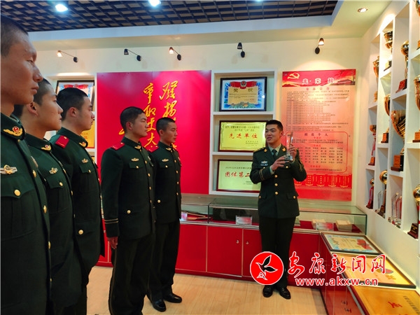 走進(jìn)榮譽(yù)室,品讀深厚歷史,聆聽(tīng)?wèi)?zhàn)斗故事,接受著隊(duì)史教育的洗禮。一張張寫(xiě)滿奮斗故事的圖片、一個(gè)個(gè)彰顯崢嶸歲月的實(shí)物,讓中隊(duì)的歷史盡在咫尺,使新兵備受感染,重塑初心,進(jìn)一步加強(qiáng)了黨支部的凝聚力,堅(jiān)定了新兵駐守安康、奉獻(xiàn)安康的信心與決心。