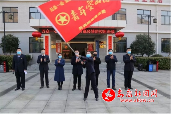 儀式上,“疫情防控青年突擊隊”隊員鄭重承諾:我志愿加入青年突擊隊,堅決做到最艱苦的擔(dān)子我們挑,最需要的地方我們?nèi),最緊急的關(guān)頭我們上,最困難的時刻我們到,遵守組織紀(jì)律,服從工作安排。吃苦在前,沖鋒在先,為隊旗爭光,為疫情防控貢獻(xiàn)青春力量。萬眾一心,眾志成城,堅決打贏疫情防控狙擊戰(zhàn)。