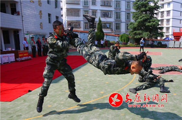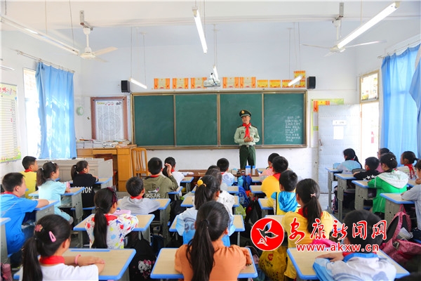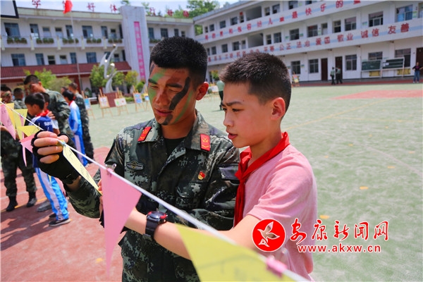 授課結(jié)束后,官兵們便開始與孩子們開展互動活動,少先隊員為支隊領導戴上了鮮艷的紅領巾,官兵們展示了擒敵拳,為孩子們送來文體器材和每人一份的學習用品。并通過猜謎語、玩游戲、學唱歌、講故事等形式,讓孩子們了解軍隊、走近軍人。