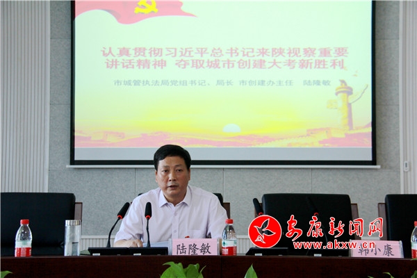 陸隆敏要求,全體黨員干部要認真學(xué)習(xí)習(xí)近平總書記重要講話精神,通過集中學(xué)習(xí)、個人自學(xué)、專題黨課、主題黨日等多種方式,深刻領(lǐng)會、準確把握其核心要義、精神實質(zhì)、豐富內(nèi)涵、實踐要求,切實把習(xí)近平總書記的重要講話精神轉(zhuǎn)化為推動城市管理和城市創(chuàng)建工作的具體行動。