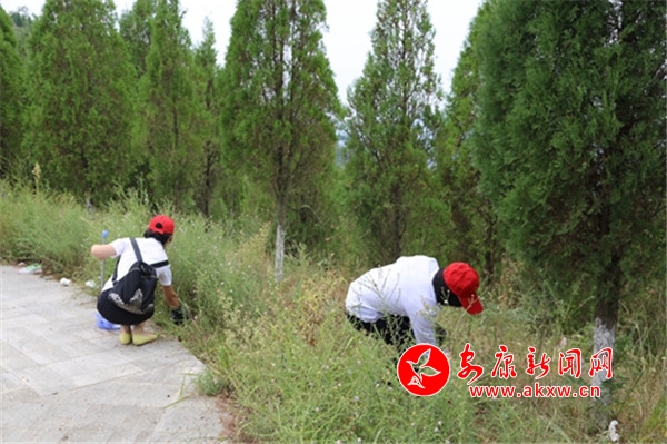 活動(dòng)中,黨員們頭戴小紅帽、身穿紅馬甲,經(jīng)過有序分工,及時(shí)投入到了志愿服務(wù)中。黨員們對香溪洞沿線至牛嶺村主干道的果皮箱、馬路防護(hù)欄、便民設(shè)施等進(jìn)行了清潔擦拭;對公路沿線護(hù)坡、綠化林帶地面白色垃圾和雜物進(jìn)行了清理。通過半天時(shí)間的環(huán)境衛(wèi)生整治,周圍環(huán)境煥然一新,為過往群眾和游客營造了整潔的活動(dòng)環(huán)境。