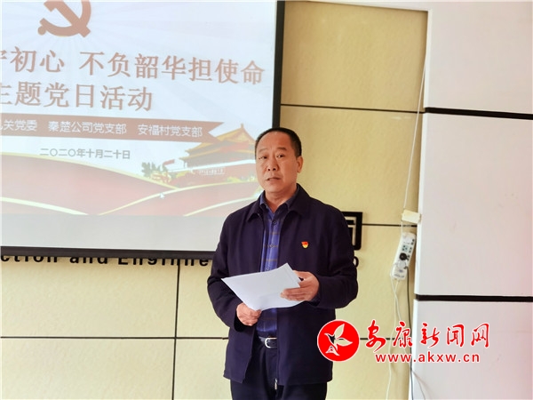 在安康秦楚建設(shè)工程有限公司,市審計(jì)局機(jī)關(guān)黨委、安康秦楚建設(shè)工程有限公司黨支部、白河縣安福村黨支部聯(lián)合開(kāi)展“履職盡責(zé)守初心 不負(fù)韶華擔(dān)使命”主題黨日活動(dòng),組織廣大黨員重溫入黨誓詞,傳達(dá)學(xué)習(xí)10月11日市政府黨組(擴(kuò)大)集體學(xué)習(xí)會(huì)議精神,秦楚建設(shè)工程有限公司黨支部書(shū)記、白河縣城關(guān)鎮(zhèn)安福村支部書(shū)記、市審計(jì)局機(jī)關(guān)黨委專(zhuān)職副書(shū)記3名黨員作交流發(fā)言;顒(dòng)最后,市審計(jì)局黨組書(shū)記、局長(zhǎng)周慶意對(duì)此次活動(dòng)進(jìn)行現(xiàn)場(chǎng)點(diǎn)評(píng)。