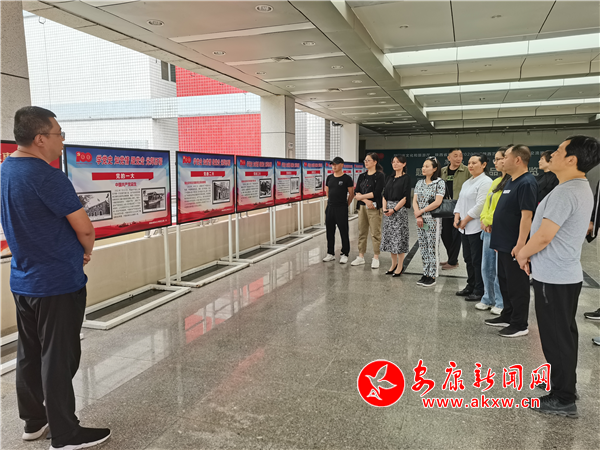 本網(wǎng)訊(通訊員 何萬鑫)為熱烈慶祝中國共產(chǎn)黨建黨100周年,推進(jìn)黨史學(xué)習(xí)教育深入人心,安康市群眾藝術(shù)館精心謀劃,在館內(nèi)二樓平臺打造“黨史長廊”陣地展板。5月12日下午,市群藝館副館長陳俊波,帶領(lǐng)館全體部分黨員干部在陣地參觀學(xué)習(xí)、交流心得。