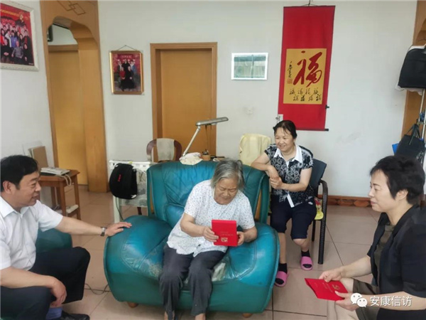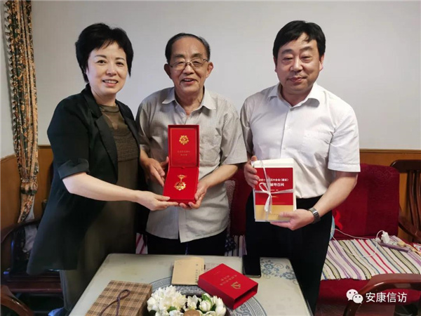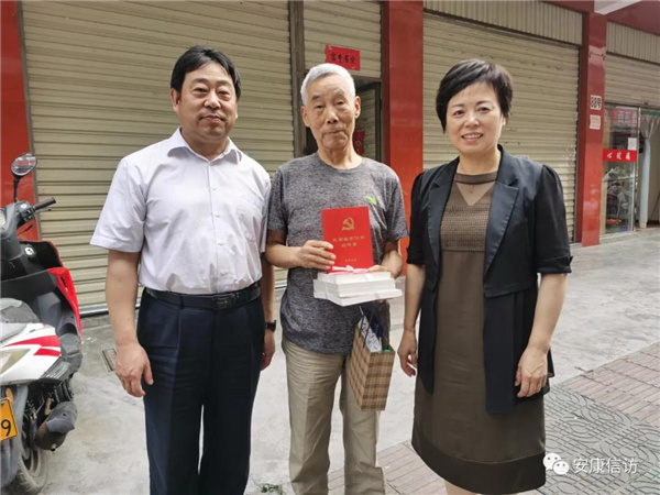 在黨的百年華誕即將到來之際,6月21日,市政府副秘書長、市信訪局局長馬霞,市信訪局黨組成員、正縣級督查專員魯延貴來到市信訪局三名退休老黨員家中,為他們頒發(fā)“光榮在黨50年”紀念章,送去黨史學(xué)習(xí)教育系列書籍和祝福。