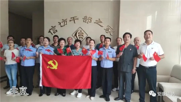 雨后的蔣家坪茶山,空氣清新怡人,市信訪局在家全體黨員干部在這里盡情地?fù)]舞著小紅旗,歌唱《沒有共產(chǎn)黨就沒有新中國》;在北京駐京工作組駐地,在市政府副秘書長、市信訪局長馬霞的帶領(lǐng)下,大家高歌《沒有共產(chǎn)黨就沒有新中國》。雖遠(yuǎn)隔千山,但大家用嘹亮動(dòng)聽的歌聲重溫紅色歷史,匯聚了對(duì)黨、對(duì)祖國最真摯的情感。