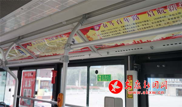 市公交公司黨委利用公交車流動性強(qiáng)、宣傳面廣的優(yōu)勢,精心打造黨史學(xué)習(xí)教育移動課堂和大眾學(xué)讀基地。黨史學(xué)習(xí)教育移動課堂以7路、12路和13路3條公交線路為核心,在40輛公交車內(nèi)安裝400塊宣傳展板,主要展示安康紅色革命故事和典型人物事跡等內(nèi)容,讓乘客在乘車途中隨時隨地學(xué)黨史,打通黨史學(xué)習(xí)教育“最后一公里”。黨史學(xué)習(xí)教育大眾學(xué)讀基地以安康火車站公交首末站為核心,在護(hù)欄上安裝20余塊學(xué)習(xí)展板,便于乘客候車、職工休息時學(xué)習(xí)黨史,推動黨史學(xué)習(xí)教育融入生活、融入日常。