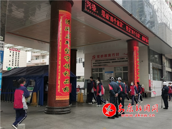 漢濱高級中學西校區(qū)的同學有序地進入校園SE3安康新聞網