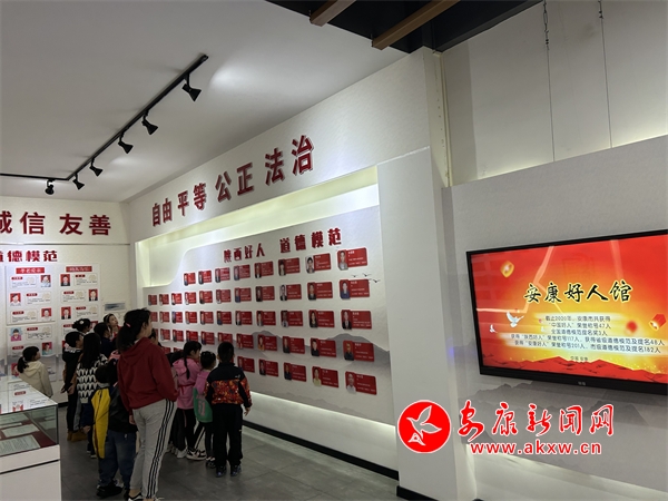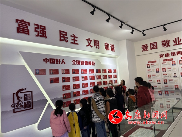 志愿者利用非遺互動墻組織孩子們學習《紅軍老祖》的故事,通過文字、圖片以及志愿者的講解讓孩子們直觀了解英雄事跡,了解到“紅軍老祖”這種尊稱背后,寄托著人民群眾對紅軍真誠、淳樸、久遠的熱愛和懷念。隨后,志愿者帶孩子們參觀“安康好人館”,“安康好人館”分成前言板塊、全國道德模范及中國好人板塊、陜西道德模范及陜西好人板塊、安康道德模范板塊,培養(yǎng)和樹立孩子們“誠實守信”“助人為樂”“孝老愛親”“敬業(yè)奉獻”“見義勇為”的文明意識。最后,志愿者將孩子們帶到書畫展廳,通過參觀、講解的方式,讓孩子們感受傳統(tǒng)文化的藝術魅力,希望孩子們學習藝術作品的構圖、色彩搭配、線條等藝術手法并運用到自己的學習當中。