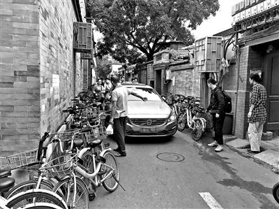 一名在胡同口維持秩序的醫(yī)院保安不時(shí)會(huì)提醒行人,不要將共享單車停放在醫(yī)院門口,并幫忙將道路中間的共享單車向兩邊靠攏,為路面留出更多空隙。但隨著人數(shù)增多,道路依然不可避免地越來越擠。北青報(bào)記者觀察發(fā)現(xiàn),近半個(gè)小時(shí)的時(shí)間里,就有四輛機(jī)動(dòng)車被胡亂停放的單車卡在道路中間,被困車輛甚至連車門都難以打開,只能求助醫(yī)院保安或者周圍居民來挪開車旁的共享單車。8點(diǎn)左右,一名ofo小黃車運(yùn)營人員在接到醫(yī)院保安的電話后趕到現(xiàn)場(chǎng)。據(jù)他介紹,僅現(xiàn)場(chǎng)的小黃車就需要七八次才能全部搬走,搬出來的單車會(huì)被投放在附近其他需要用車的地點(diǎn),“搬運(yùn)工作大概會(huì)用一上午吧。”