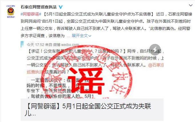 【真相】2016年類似的謠言就曾多次出現(xiàn),網(wǎng)警媒體都進(jìn)行了辟謠。所謂的“兒童守護(hù)點”還有多個版本,比如銀行、書店、藥店等,都被冠以“中國失聯(lián)兒童守護(hù)站”的稱號,日期也多種多樣,從1月1日到12月1日,幾乎遍布一年四季。4月23日起,石家莊、成都、清遠(yuǎn)、馬鞍上等全國多地網(wǎng)警對此進(jìn)行辟謠。