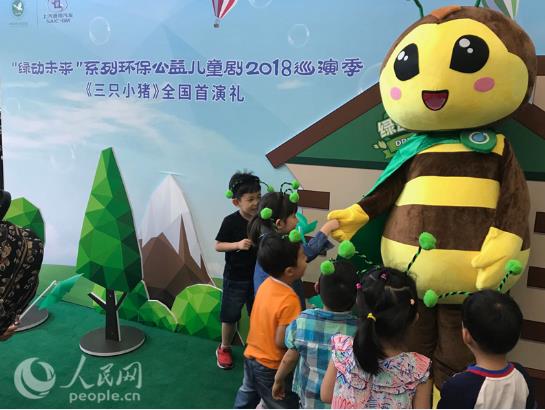 作為“五年計(jì)劃”重要部分,“綠動(dòng)未來”系列環(huán)保公益兒童劇的首部作品《三只小豬》將走進(jìn)北京、杭州、上海、蘇州、寧波、合肥、武漢、長沙、青島和深圳十個(gè)城市。《三只小豬》是百老匯著名的兒童合家歡音樂劇,由“開心麻花”引入國內(nèi)。經(jīng)過改編的《三只小豬》,被賦予了全新的環(huán)保理念,融入了新角色——“綠動(dòng)未來”環(huán)保公益平臺(tái)卡通形象“小青蜂”。在當(dāng)日的首演中,“小青蜂”不斷向小朋友們傳播環(huán)保知識(shí),讓孩子們?cè)跉g樂看劇時(shí)感悟自然、綠色、成長與愛。