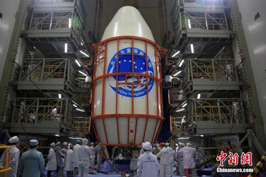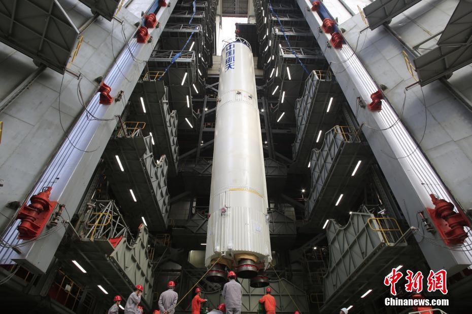 11月1日深夜23時57分,中國在西昌衛(wèi)星發(fā)射中心用長征三號乙運載火箭,成功發(fā)射第41顆北斗導(dǎo)航衛(wèi)星。這顆衛(wèi)星屬于地球靜止軌道衛(wèi)星,是中國北斗三號系統(tǒng)第17顆全球組網(wǎng)衛(wèi)星,也是北斗三號系統(tǒng)首顆地球靜止軌道衛(wèi)星。圖為衛(wèi)星發(fā)射前,火箭在發(fā)射場進(jìn)行吊裝(資料圖片)。中新社發(fā) 史嘯 攝