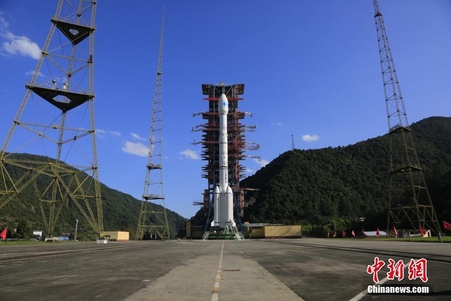 11月1日深夜23時57分,中國在西昌衛(wèi)星發(fā)射中心用長征三號乙運載火箭,成功發(fā)射第41顆北斗導(dǎo)航衛(wèi)星。這顆衛(wèi)星屬于地球靜止軌道衛(wèi)星,是中國北斗三號系統(tǒng)第17顆全球組網(wǎng)衛(wèi)星,也是北斗三號系統(tǒng)首顆地球靜止軌道衛(wèi)星。圖為衛(wèi)星發(fā)射前,星箭組合體蓄勢待發(fā)。中新社發(fā) 史嘯 攝