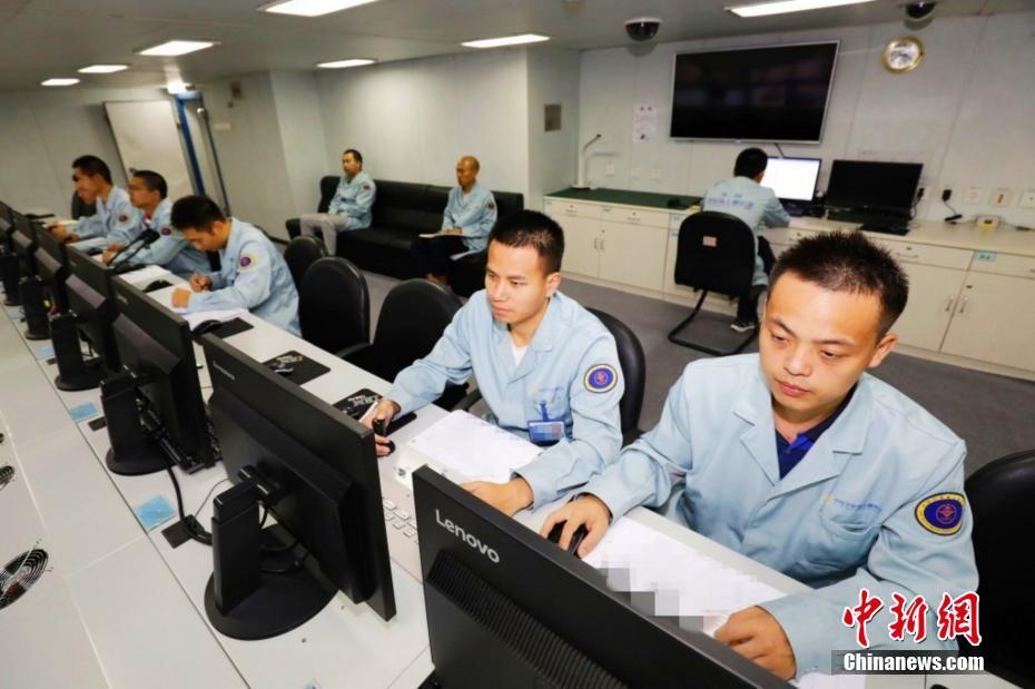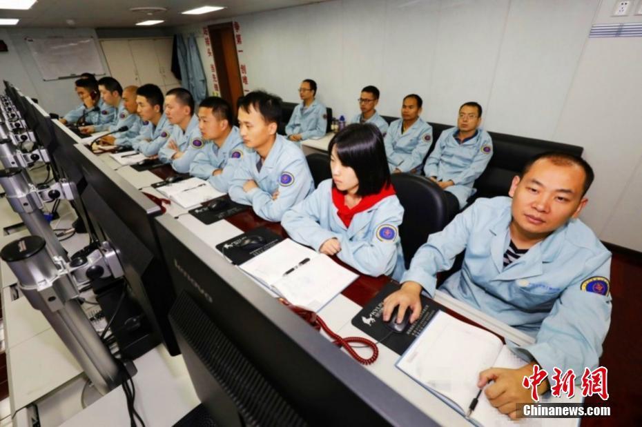 遠(yuǎn)望3號船副船長王小兵介紹說:“任務(wù)前,我們做了大量軟硬件技術(shù)狀態(tài)驗證、信號特征分析等工作,任務(wù)中,還特別關(guān)注目標(biāo)信號變化趨勢以及各類重要事件,及時準(zhǔn)確下達(dá)了調(diào)度指揮口令,確保了指揮流暢、上下協(xié)同、任務(wù)圓滿!眻D為測控系統(tǒng)崗位人員嚴(yán)陣以待。 高超、何露東杰/文 何露東杰 攝