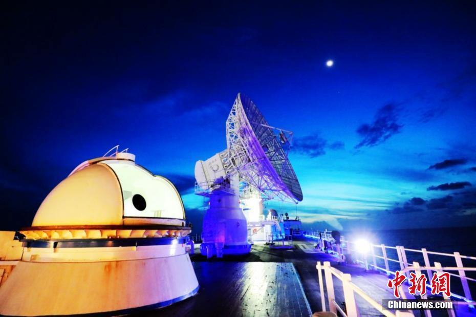 火箭升空飛行20多分鐘后,遠(yuǎn)望3號船在距離祖國萬里之遙的大洋深處及時發(fā)現(xiàn)并成功捕獲目標(biāo),船載USB統(tǒng)一測控系統(tǒng)迅速接收到火箭遙測參數(shù),并及時處理傳送至西安衛(wèi)星測控中心、西昌衛(wèi)星發(fā)射中心,為中心判斷火箭飛行狀態(tài)提供重要依據(jù);兩套船載航天測控設(shè)備同時對火箭及衛(wèi)星開展測量工作,并及時、準(zhǔn)確計算向西安衛(wèi)星測控中心提交了高精度數(shù)據(jù),整個海上測控過程持續(xù)近10分鐘,為火箭三級二次關(guān)機、星箭分離等一系列關(guān)鍵動作提供了有力測控支撐。圖為深夜,遠(yuǎn)望3號船精準(zhǔn)測控。 高超、何露東杰/文 亓創(chuàng) 攝