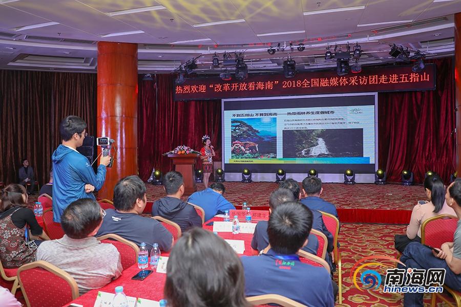 在當(dāng)天的推介會上,五指山市旅游商務(wù)局工作人員對來自全國60余家重點(diǎn)新聞網(wǎng)站、新聞客戶端的編輯記者作了精彩的旅游資源推介,詳細(xì)介紹五指山獨(dú)特的地理位置、資源形態(tài)、氣候資源、文化底蘊(yùn)以及有著巨大發(fā)展?jié)摿Φ募t色旅游資源。