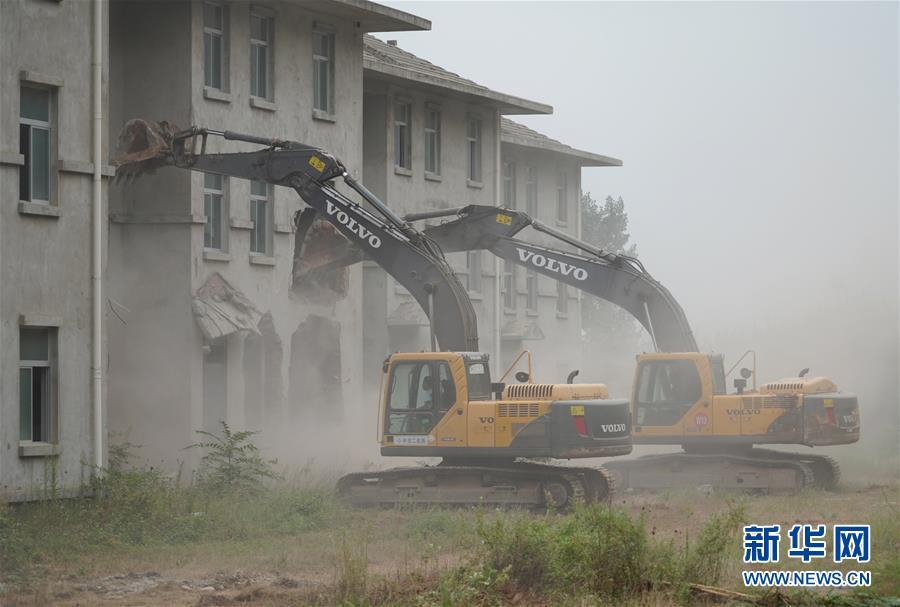 2018年8月14日,大型機械對陜西西安市鄠邑區(qū)蔣村鎮(zhèn)的違建別墅進(jìn)行拆除。新華社記者 邵瑞 攝