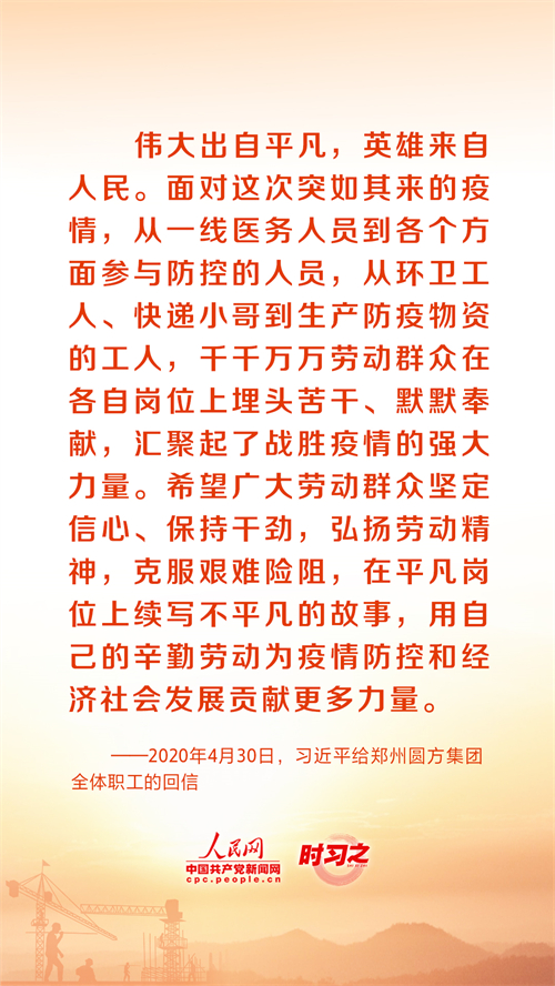 人民創(chuàng)造歷史,勞動(dòng)開(kāi)創(chuàng)未來(lái)。黨的十八大以來(lái),習(xí)近平總書(shū)記始終心系全國(guó)廣大勞動(dòng)者,激勵(lì)廣大勞動(dòng)者在平凡崗位上續(xù)寫(xiě)不平凡的故事。在“五一”國(guó)際勞動(dòng)節(jié)到來(lái)之際,讓我們重溫總書(shū)記的諄諄話語(yǔ),用辛勤勞動(dòng)為經(jīng)濟(jì)社會(huì)發(fā)展貢獻(xiàn)力量。FeR安康新聞網(wǎng)