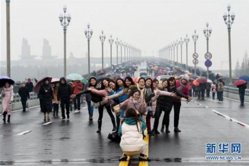 12月26日,游客在南京長江大橋拍照留念。 當(dāng)日,經(jīng)過全封閉維修改造后的南京長江大橋公路橋向公眾開放,吸引不少游客前往。 新華社記者 李博 攝……