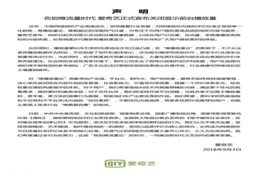 一線丨愛奇藝禁外顯播放量終結(jié)流量時代?有人歡喜有人慌了