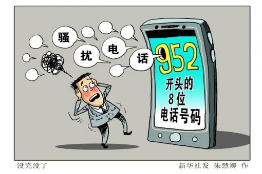 新華社廈門9月4日電 題:沒完沒了的錄音推銷、屢禁不絕的小額詐騙……誰在操縱952開頭的騷擾電話? 新華社“新華視點”記者顏之宏 漫畫:沒完沒了 新華社……