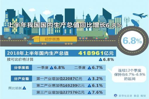 新華社北京7月16日電(記者陳煒偉、安蓓)國(guó)家統(tǒng)計(jì)局16日發(fā)布數(shù)據(jù),初步核算,上半年國(guó)內(nèi)生產(chǎn)總值418961億元,按可比價(jià)格計(jì)算,同比增長(zhǎng)6.8%。分季度看,一季度……