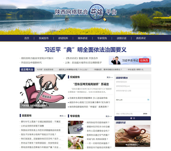 陜西省網(wǎng)絡(luò)舉報(bào)中心官網(wǎng)“陜西互聯(lián)網(wǎng)違法和不良信息舉報(bào)中心”網(wǎng)站上線于2017年2月5日,主要功能是開展網(wǎng)絡(luò)舉報(bào)工作宣傳,受理網(wǎng)民對(duì)網(wǎng)絡(luò)違法和不良信息舉報(bào),開展針對(duì)網(wǎng)絡(luò)謠言的識(shí)謠辟謠工作,以及配合相關(guān)部門做好網(wǎng)絡(luò)輿情的正面引導(dǎo)。“陜西網(wǎng)絡(luò)聯(lián)合辟謠平臺(tái)”是陜西網(wǎng)絡(luò)辟謠聯(lián)盟的官方網(wǎng)站,上線于2017年7月28日,主要用于宣傳、受理和發(fā)布重要辟謠信息及公布相關(guān)工作數(shù)據(jù)。