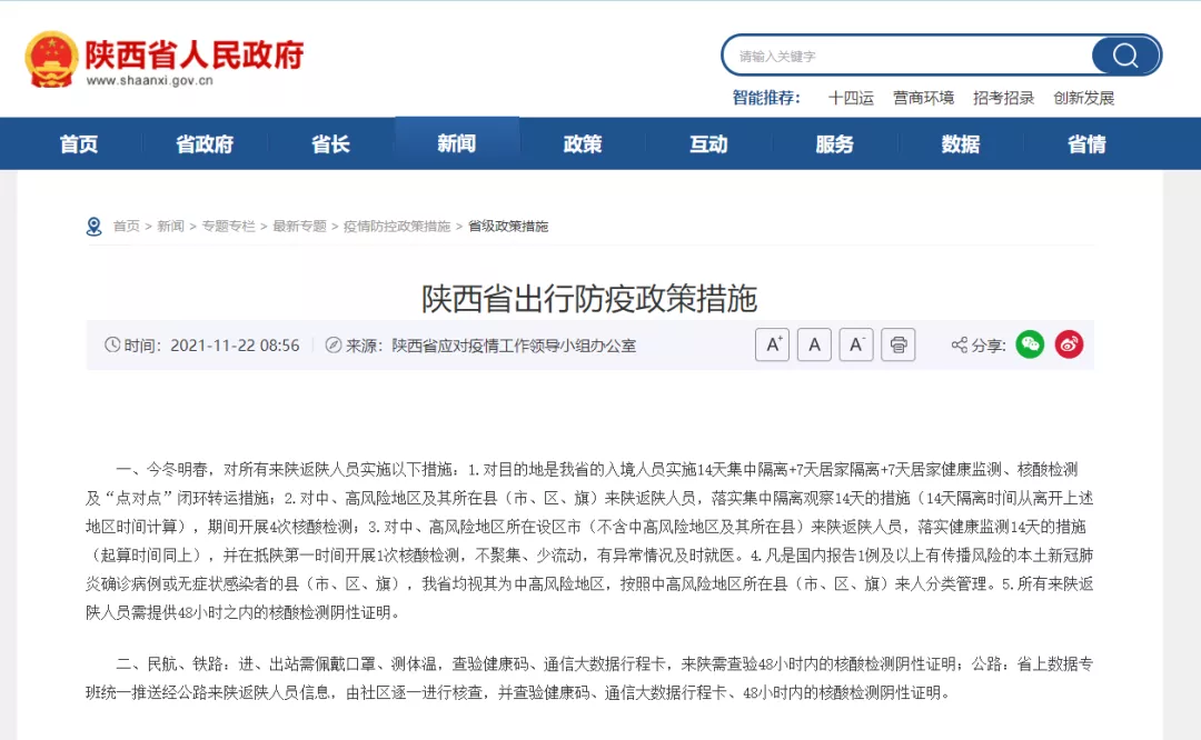 近日,陜西省應對疫情工作領導小組辦公室發(fā)布陜西省最新出行防疫政策措施。