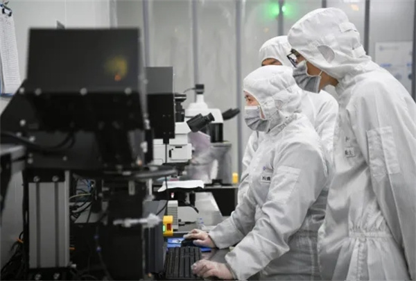 技術(shù)人員測試晶圓。新華社 張博文 攝