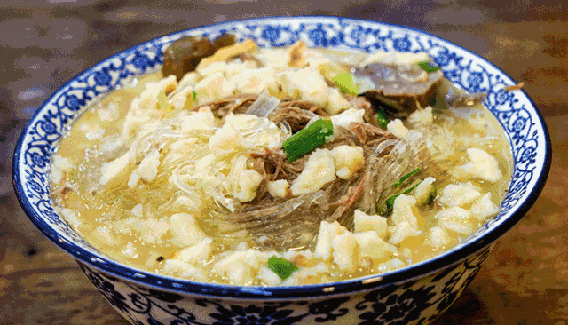 一碗熱騰騰的牛羊肉泡饃湯濃饃香