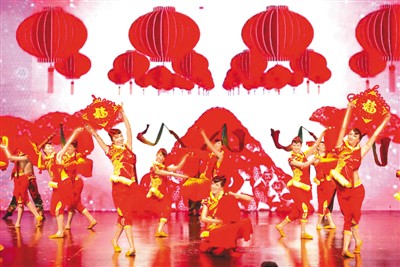 | 中國歌劇舞劇院演員表演的舞蹈《張燈結彩》。 |