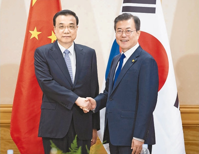 | 當(dāng)?shù)貢r間五月九日下午,國務(wù)院總理李克強(qiáng)在東京會見韓國總統(tǒng)文在寅。 |