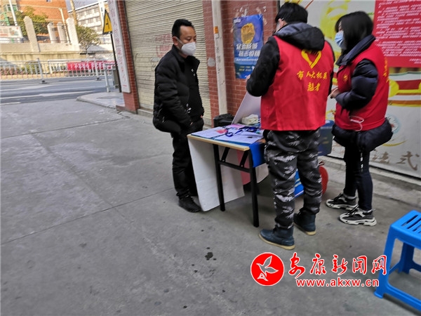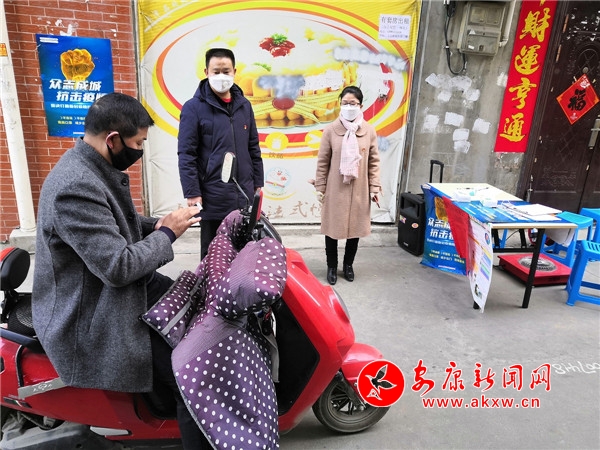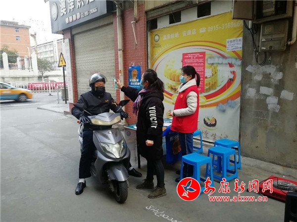 新鋪社區(qū)轄區(qū)老舊無物業(yè)小區(qū)多,黨校西巷里有5個(gè)老舊小區(qū),為筑牢疫情防控第一道防線,社區(qū)在巷口設(shè)立了疫情排查卡點(diǎn),社區(qū)工作人員不但要承擔(dān)戶外排查點(diǎn)的值守,還要承擔(dān)信息的核實(shí)和上報(bào)、帶社區(qū)醫(yī)生入戶測量體溫等任務(wù)。“五城聯(lián)創(chuàng)”幫扶單位安康市人大辦、市殘聯(lián)得知社區(qū)面臨困難后,市人大辦每天3名黨員、市殘聯(lián)1名黨員、中國聯(lián)通安康分公司1名黨員主動(dòng)到社區(qū)報(bào)到領(lǐng)崗,助社區(qū)共戰(zhàn)“疫”。他們不畏嚴(yán)寒、不懼風(fēng)險(xiǎn)、嚴(yán)防值守,對(duì)每一位進(jìn)出小區(qū)的人員認(rèn)真登記、仔細(xì)詢問,嚴(yán)格做好居民小區(qū)外來人員勸返,耐心勸導(dǎo)小區(qū)居民多居家、少外出,及時(shí)向小區(qū)群眾發(fā)放防控知識(shí)宣傳資料。