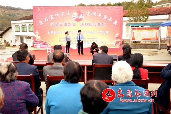 本網(wǎng)訊(通訊員 王丹)11月1日,由石泉縣政法委、縣委宣傳部、中池鎮(zhèn)共同主辦的2019年憲法宣傳暨平安建設(shè)文藝匯演在中池鎮(zhèn)老灣村舉行。